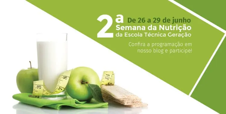 A Escola Técnica Geração promove entre os dias 26 a 29 de junho a 2ª Semana da Nutrição da instituição de ensino. No ano passado, a primeira edição do evento em homenagem ao Dia do Técnico em Nutrição, que é celebrado no dia 27 de junho, foi realizada entre os dias 27 e 30 do mesmo mês.