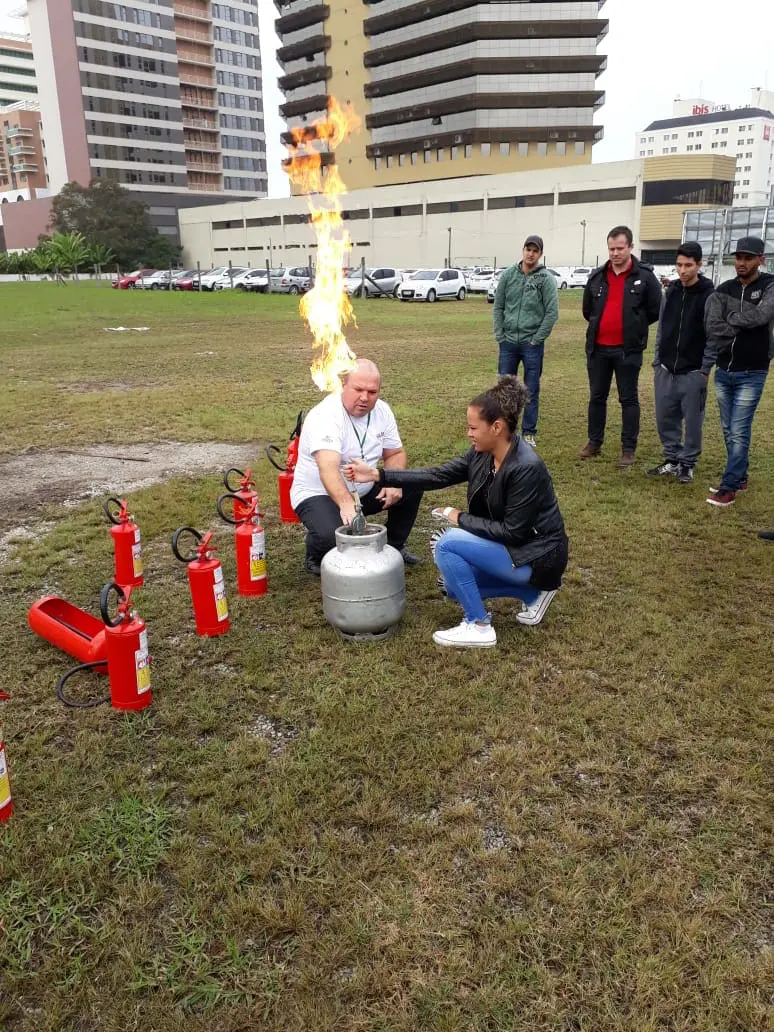 No dia 06/07/2018 os alunos do Curso Técnico em Segurança do Trabalho das turmas ST103 e ST104 realizaram um treinamento prático relacionado a prevenção e combate a incêndios. No referido treinamento os alunos puderam experimentar de forma prática como manusear os extintores de incêndio, assim como as medidas de prevenção na utilização de botijão de gás. As instruções práticas foram repassadas pelo instrutor Carlos Magno Nunes e também estiveram presentes os professores Anderson Souza Rocha, Giselle Barcelos e o Gerente do Curso Dioni Damázio.